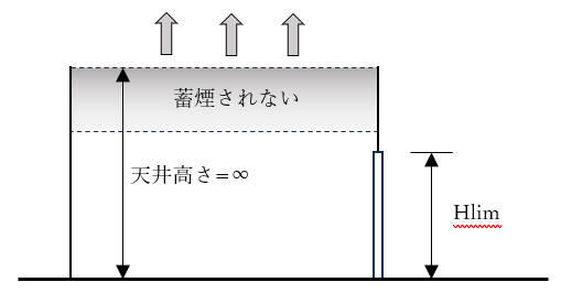 {(天井高さ(∞)-Hlim)×室の面積}/煙発生量=∞