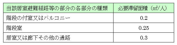 当該居室避難敬老等の部分の各部分の種類に応じ、それぞれ次の表に定める必要滞留面積(単位 ㎡/人)![]()