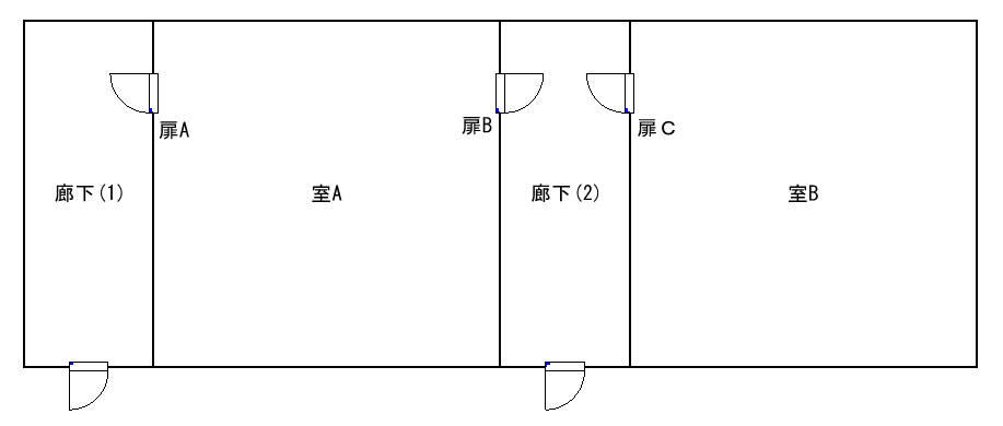 ここでひとつの疑問が生じます。「室Aを検証したときには室Aの在館者が廊下(2)を利用する前提だったのに、室Bを検証するときには利用しないのはなぜだろう?」
