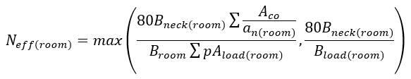 以下の計算式で扉毎に有効流動係数を求めます。避難経路等の部分で滞留が生じ流動係数が小さくなります。